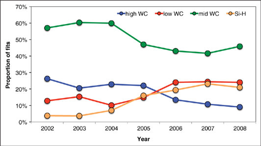 Figure 4. Soft lens materials from 2002 to 2008.