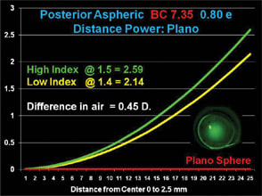 Figure 2. Increased add power associated with high-index posterior aspheric lens designs.