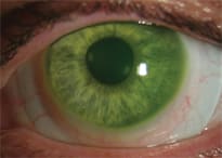 The Jupiter scleral contact lens (Medlens Innovations, Inc./Essilor) is designed as a semisealed lens that does not need to closely align with the cornea. Its advantage over smaller contact lens designs is that it can trap a large volume liquid reservoir that not only can mask extreme corneal irregularity (Figure 2), but can also be therapeutic for patients who have corneal/scleral disease.