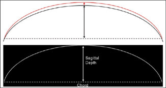 Figure 1. Relative sagittal depth differences between contact lens and eye (top). Sagittal depth (bottom).