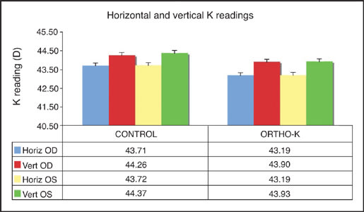 Figure 2. Baseline statistics for horizontal and vertical corneal curvature.