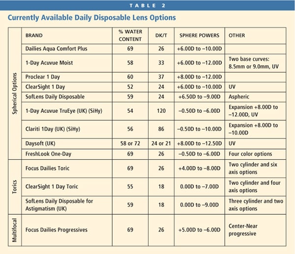 When you consider that 90 percent of lenses prescribed in North America are for myopia with aver-age powers of −3.00D to −3.25D, there is now a daily disposable lens for almost everyone.