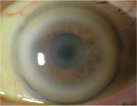 Central crystalline dystrophy or Schnyder's Dystrophy is a rare autosomal dominant corneal dystrophy that develops by the second or third decade of life1-5. It is characterized by a central, ring-shaped corneal opacity resulting from polychromatic crystal formation that is confined to the anterior stroma and Bowman's layer1,6-8. By middle age, significant corneal arcus develops. Be sure to test patients who have this condition for hyperlipidemia, which has been linked to central crystalline dystrophy1,9-12.