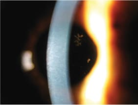 Approximately 65 percent of patients who have HZO will have corneal involvement1,2. Herpes Zoster can affect the cornea in a number of ways including direct viral infection, antigen-anibody reactions, vasculitis, and neurotrophic keratitis2. Pseudodentrites that form are raised, plaque-like lesions of swollen epithelial cells that are without ulceration and are thought to result directly from the virus2. These of course need to be differentiated from dendrites that result from herpes simplex that are ulcerated and have terminal bulbs. Management of pseudodendrites involves only observation and palliative treatment with lubrication.