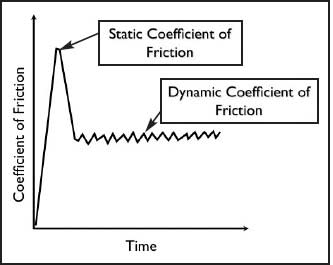 Figure 4. Graphic illustration of static coefficient of friction, occurring at initiation of movement between the surfaces, and dynamic coefficient of friction, which occurs when movement is maintained.