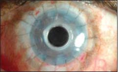 The use of a contact lens over the KPro is recommended to limit desiccation of the ocular surface and therefore minimize the possibility of corneal thinning and stromal melting (Dohlman et al, 2002). These advances are not without other complexities that also need to be addressed. Because most of these eyes have undergone multiple corneal grafts prior to this procedure, they are at greater risk of developing glaucoma as the angle structures scar and deteriorate. Frequently a glaucoma tube shunt is implanted at the time of surgery when topical therapy has been maximized or the long-term risk of progression is present.