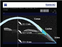 Figure 4. Limbal and scleral angle position illustration with the OCT in the nasal-inferior direction of an left eye in a study subject.