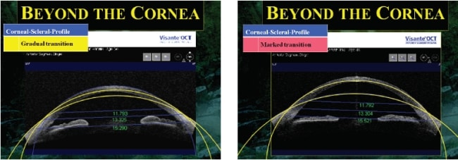 Figure 3. Examples of a gradual transition from cornea to sclera (left) and a marked transition from cornea to sclera (right).