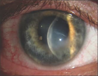 Corneal hydrops is severe stromal and epithelial edema that results from a break in Descemet's membrane. It is a manifestation of ectactic disease such as keratoconus, pellucid marginal degeneration, and keratoglobus. Approximately 3 percent of keratoconus patients develop hydrops1,2. Allergies and eye rubbing are risk factors1,2. Recovery from the edema usually takes two to three months, and hyperosmotic therapy has limited efficacy. The patient is at risk for microbial keratitis if there is significant epithelial disruption, so consider prophylactic antibiotics. Pain can be managed with the use of a therapeutic contact lens. Resolution of hydrops can result in corneal scarring and flattening. Although flattening can make contact lens fitting easier, 60 percent will require a corneal transplant1.