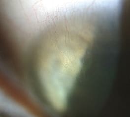 A 15-year-old female presented to our office complaining of bilateral pain and photophobia. She had worn soft traditional hydrogel lenses for four years. The patient admits that she frequently wears the daily wear contact lenses on an extended wear basis for days and occasionally weeks at a time.