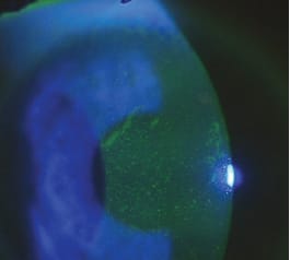 We referred the patient for a corneal consult to determine the feasibility of surgical intervention. In many cases this condition responds well to stem cell transplantation. The specialist recommended that we delay surgery, and that the patient discontinue all contact lens wear. We have seen significant regression of the pannus and improvement in the keratitis in the right eye. Unfortunately we have seen very little improvement in the left eye. This patient, an avid athlete, is able to wear high-Dk contact lenses on a very limited basis, only for practice and games. Ultimately our patient may require a limbal stem cell transplant.