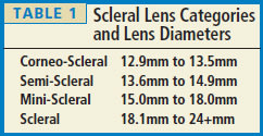 Due to their large diameters and how they're fit, scleral lenses require specific handling and care instructions. Scleral GP lenses measure between 12.9mm and more than 24mm in diameter and are subdivided into four categories (Table 1; Sindt, 2008).