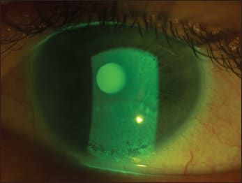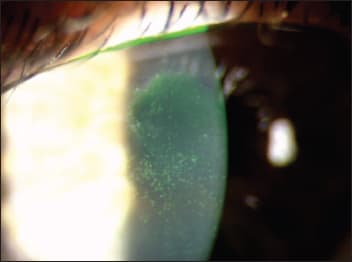Figure 2. Central corneal staining leads to reduced visual performance that is not typically corrected by a blink.