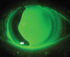 I mentioned earlier that fenestrations may help reduce or eliminate bubbles, but fenestrations may also create bubbles. Sometimes these bubbles are small and of no consequence to the fit, vision, or health of the patient. However, large bubbles can significantly reduce negative pressure, which negatively affects the scleral lens fit by eliminating the semi-seal and allowing the lens to move (Figure 1). Larger bubbles may also negatively affect vision if they migrate over the patient's visual axis. Persistent bubbles that routinely reside in the same area can lead to tissue desiccation.