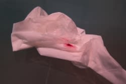 Figure 1 shows the right scleral lens of a 75-year-old female who fell and hit her right eye while wearing the lens. The trauma ruptured her 11-year-old full-thickness corneal transplant. The patient reported to our office with the scleral contact lens already out of her eye. The lens was intact without any cracks or chips. She had emergency surgery to repair the wound.