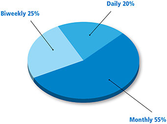 Dumbleton et al (2013) surveyed 2,147 respondents asking for compliance rates with recommended replacement schedule. They reported compliance rates for two-week replacement (34%), daily disposables (74%), and one-month replacement (67%). Even with the daily disposable modality, one-fourth of patients do not adhere to the recommended replacement schedule.
