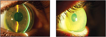 A scleral lens is designed such that a reservoir of fluid sits between the contact lens and the corneal surface (Figure 1). Therefore, the first hypothesis is that the fluid layer acts as a protective moisture layer for a compromised epithelium, providing constant moisture to the ocular surface in addition to neutralizing the refractive error.