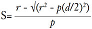 in which r = corneal or scleral radius of curvature, p = corneal or scleral shape factor (where p = 1-e2), and d = corneal or scleral diameter, accordingly.