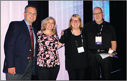 Figure 3. (left to right) CLS Editor-in-Chief and GSLS Planning Committee Member Dr. Jason Nichols, PentaVision/GSLS Conference Manager Maureen Trusky, GSLS Photographer Ursula Lotzkat, and Craig Norman, FCLSA, who was honored for 10 years of chairing the GSLS Education Committee.