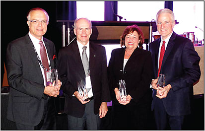 Figure 2. GSLS Award of Excellence recipients (left to right): Anthony J. Phillips, MPhil, FBOA; Gerald E. Lowther, OD, PhD, FAAO; Linda Baker (accepting for Robert Mandell, OD, PhD, FAAO); and Edward S. Bennett, OD, MSEd, FAAO.