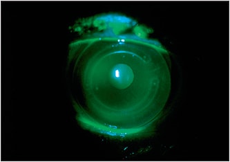Third, contact lenses should have a healthy mechanical fit with the ocular surface. In post-ICRS implantation, corneas will have an area of localized uneven elevation at the segment. It is important to confirm that the lens has a good mechanical fit and is not rubbing this area. Erosion of the overlying cornea may cause anterior displacement of the segment (Nosè et al, 1993).