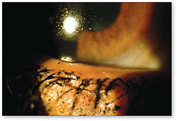 Figure 3. Granular expressions from meibomian gland orifices in an MGD patient. Courtesy of Christine Sindt, OD.