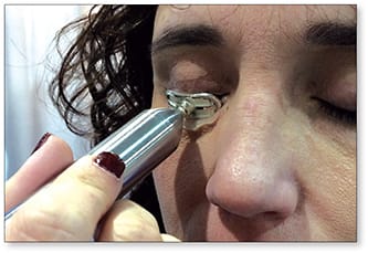 Figure 6. Patient being treated for MGD with device that emits heat to meibomian glands.