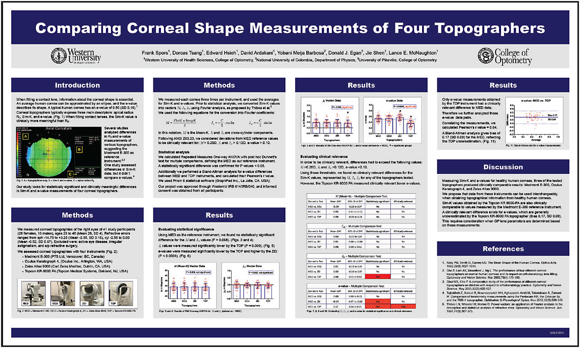 5. Comparing Corneal Shape Measurements of Four Topographers (Spors F, Tsang D, Hsieh E, Ardakani D, Barbosa YM, Egan DJ, Shen J, McNaughton LE, 2016)
