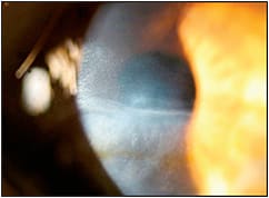 Figure 1. Corneal thinning and scarring secondary to chronic exposure after a hospital stay for Guillain-Barré.