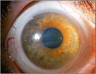 Figure 1. Scleral lens on a patient who has Salzmann’s nodular degeneration.