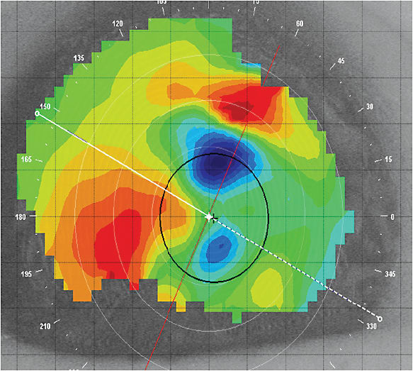 Last month, I addressed using small-diameter, steep corneal GP lenses to manage irregular astigmatism caused by small, centrally located keratoconic cones. But what design should you choose when the keratoconic cone is larger (oval cone, Figure 1), very large (globus cone), or is located away from the visual axis (Figure 2)? What is the best way to manage other causes of irregular astigmatism that result from other conditions, including corneal surgery (Figure 3) and trauma?