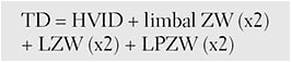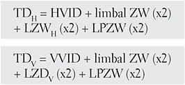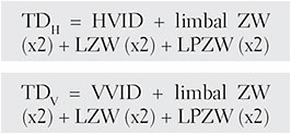 Scleral lens fitting is typically based on only the HVID value; this method may be valid in eyes with a more symmetrical limbus. The calculation of the total diameter of a scleral lens can be achieved by following this formula (Fadel, Aug. 2017):