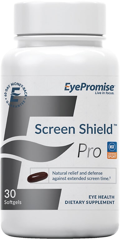 EyePromise Screen Shield Pro is GMO-, gluten-, and lactose-free and is NSF Certified for Sport for safety and efficacy. It is manufactured in U.S. Food & Drug Administration Current Good Manufacturing Practices (cGMP) facilities. Call (866) 833-2800 or visit www.explore.eyepromise.com/screenshieldpro . ■