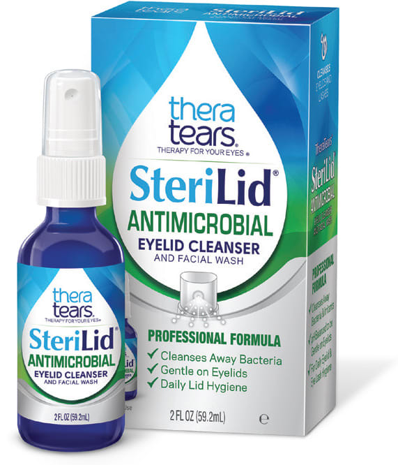 Akorn Consumer Health now offers TheraTears SteriLid Antimicrobial 0.01% Hypochlorous Acid 2 ounce formula, which the company says kills 99.9% of bacteria within 30 seconds but is pH balanced to be gentle on the eyelids. Akorn says that Thera-Tears SteriLid Antimicrobial is the first eyelid cleanser to be FDA-cleared as a medical device permitting the use of antimicrobial claims. It is also the first antimicrobial hypochlorous acid eyelid cleansing product available in retail stores, such as Rite Aid, CVS, and Walgreens, as well as being available through Amazon and through eyecare professional offices in the United States, according to the company.