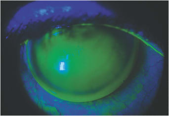 You may be wondering why I did not fit a scleral lens in this case. We did trial scleral lenses for this patient, but he preferred GPs. Some long-term GP patients do not feel comfortable with the idea of wearing a lens that is larger than that to which they are accustomed. We tried a smaller scleral lens just for an initial evaluation, and we found that he was a good candidate; however, the patient opted to keep the GPs.