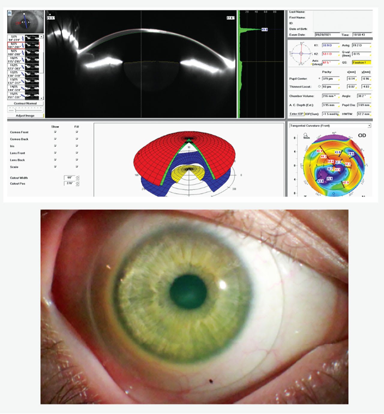 SLs protect fragile corneas, especially in cases of extreme thinning.13 A patient who has a corneal thickness of 93 µm and significant scleral asymmetry benefitted from custom SLs, which acted as a shield protecting the thin and fragile cornea (Figure 3).