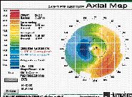 A 41-year-old woman presented with a 20-year history of both rigid and soft contact lens wear. She had discontinued use of her soft lenses three months prior to undergoing a LASIK procedure, and her refraction stabilized at OD -9.50 -1.00 x 15 and OS -9.00 -0.75 x 170, with visual acuities of 20/20 OU. An uneventful LASIK procedure was performed on her left eye, and at two weeks postoperatively, the uncorrected visual acuity was 20/300, with a manifest refraction of -4.00 -0.50 x 180, 20/30. Photokeratoscopy and corneal mapping revealed a nasally decentered ablation (Fig. 1).