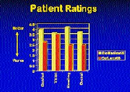 Of the initial 12 patients, nine completed the study. Two patients dropped out during the first two days and one dropped out in the second week, citing discomfort with the SofLens66. Table 1 and Figure 1 illustrate average subjective patient ratings. The scale ranges from 1 (poor) to 5 (excellent). All findings were clearly significant except for vision ratings which were essentially the same for both lenses.