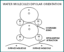 The forces of intermolecular attractions are greater when there are dipoles, according to Richard Feynman, author of The Feynman Lectures on Physics. Water is a classic example of a dipole molecule (Fig. 4). Describing the molecule, Feynman says, "... the negative charges sit more on the oxygen, and the mean positions of the negative charges and of the positive charges are not at the same point, consequently, another molecule nearby feels a relatively large force." As an attractive force between two surfaces, the dipole-dipole forces of water molecules in the tear film adds to the intermolecular forces to help form an adhering force. Intermolecular bonds with a dipole moment are sometimes called a hydrogen bond.