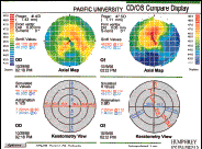 FIG. 2: Corneal mapping OU, note the inferior corneal flattening OS.
