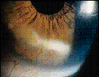 Lipid keratopathy is the occurrence of fats within the cornea and is usually related to corneal vascularization. Other etiologies include inflammatory anomalies, corneal trauma, dry eye disorders, toxic corneal injuries and nutritional disorders. It may develop suddenly or years after the original diagnosis. The keratopathy appears as dense, whitish-yellow lesions. When the vascularization is confined to a localized area in a compact cornea, the deposition tends to adopt a disc-like shape. When the cornea is swollen, it takes on a fan-like shape, radiating from the ends of the vessels, and in the presence of widespread vascularization, it is diffuse.