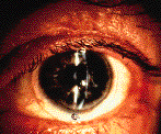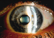 FIG. 9: Reverse geometry rigid contact lens fit to a post radial keratotomy