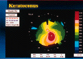 FIG. 4: Corneal topography of a keratoconus patient. Note the irregular