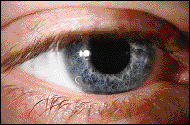 FIG. 3: Magnified view of lens on eye with lids retracted. |