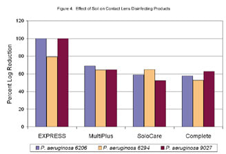 Figure 4. Effect of soil on contact lens disinfecting products. |