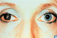 Figures 1 (top) and 2. Opaque prosthetic contact lenses helped restore this patient's confidence in her self image after her right eye was scarred by