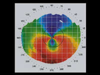 | Figure 2. A more characteristic corneal topography of a patient with PMD. | |