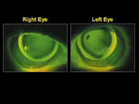 | Figure 3. Fluorescein patterns of the patient's 17.00D. toric GP lenses. |