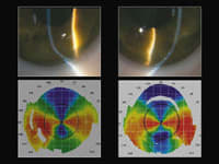 Throughout the years, we've reported a number of cases involving pellucid marginal degeneration (PMD), which commonly manifests as a bilateral thinning of the inferior peripheral cornea. The thinning begins approximately 1.0mm above the inferior limbus, resulting in high degrees of against-the-rule (ATR) corneal astigmatism. The optical management of PMD involves a wide range of modalities including spectacles and GP, toric soft, hybrid, piggyback, semi-scleral and scleral contact lenses.