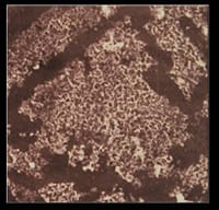 Figure 1. Scanning electron micrograph of a bacterial biofilm within a contact lens case. |